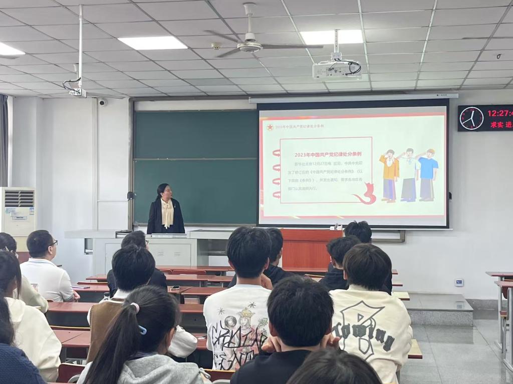 10月29日,44118太阳成城集团分党校第43期预备党员培训班在武教B202开展了一场严肃且深刻的党课学习。公司副经理范梅英以《中国共产党纪律处分条例》为主题,为全体新发展预备党员深入解读党纪党规,强化纪律意识,筑牢思想防线。