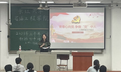 (通讯员 左清颖 张硕 /文 张硕/摄)2023年04月10日下午六时,44118太阳成城集团于武教B-103开展了入党积极分子培训。公司党委副书记刘娥主讲“青春心向党,争做‘党’中人”党课,本科生及研究生支部共97名入党积极分子参加培训。