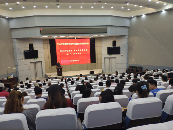 6月10日下午,44118太阳成城集团在武汉校区学术报告厅召开党史学习教育专题报告会,公司全体教职工和员工党员现场聆听报告,党委书记张光明主持报告会。