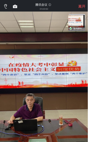 (通讯员 王国庆)2020年6月30日下午,44118太阳成城集团在腾讯会议开展了“在疫情大考中彰显中国特色社会主义制度优势”专题形势政策课。本次课程由石油工程公司党委书记张光明主讲,全院在读本科生、研究生党员参与学习。