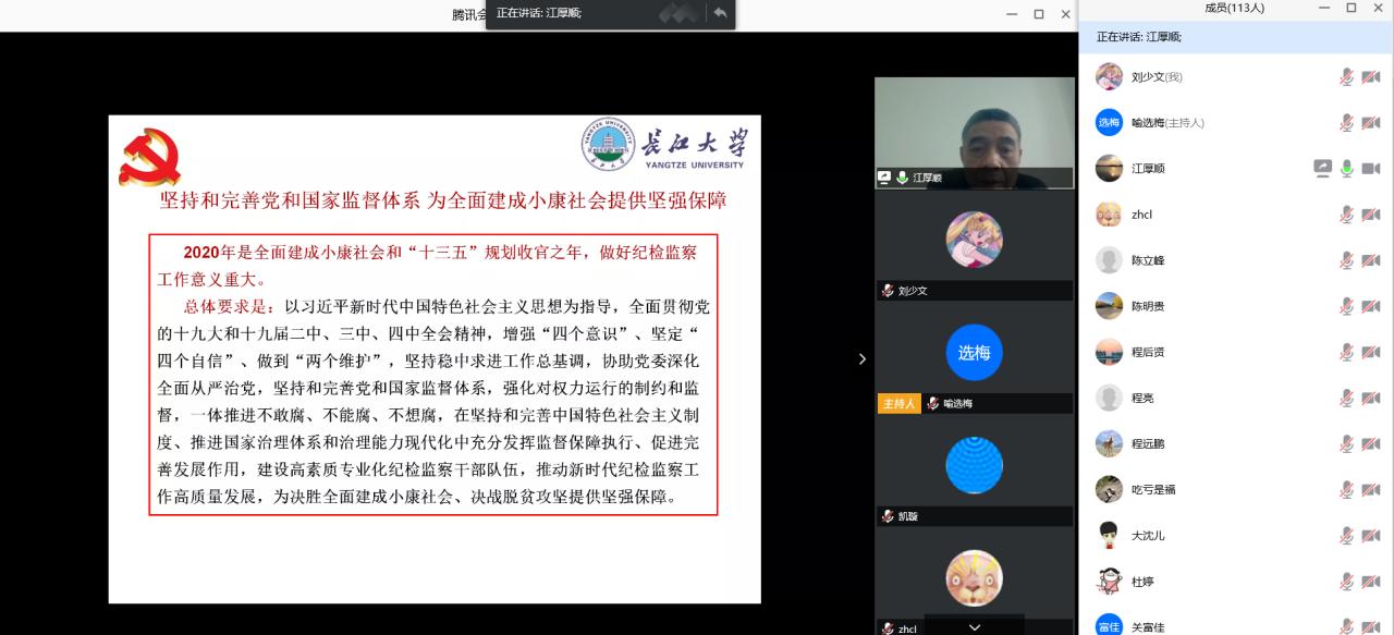 4月23日下午3时,公司通过腾讯会议在线召开4月份师生政治理论学习会,会议由党委书记张光明主持,100多名教职工齐聚云断,对“习近平新时代中国特色社会主义思想”和“奋进新时代 筑梦双一流”进行了线上专题集中学习。