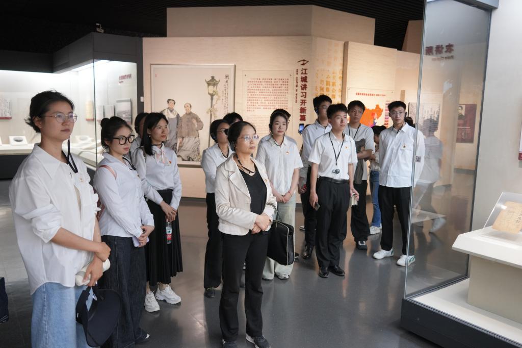 在讲解员的引导下,师生党员们开启了一场穿越时空的红色之旅。在武昌农民运动讲习所旧址,师生们深入了解了毛泽东等共产党人培养农民运动骨干的艰辛历程。周恩来总理亲笔题写的匾额、简朴的教室和宿舍,让大家仿佛回到了那段激情燃烧的岁月,深刻体会到“星星之火,可以燎原”的革命力量。在毛泽东同志旧居,一只生锈的铁箱和一台斑驳的座钟无声诉说着毛泽东与家人最后的团聚时光,以及他为革命事业殚精竭虑的感人故事。在中共五大会址纪念馆,馆内陈列的珍贵文物和史料,生动再现了革命先辈的奋斗历程。