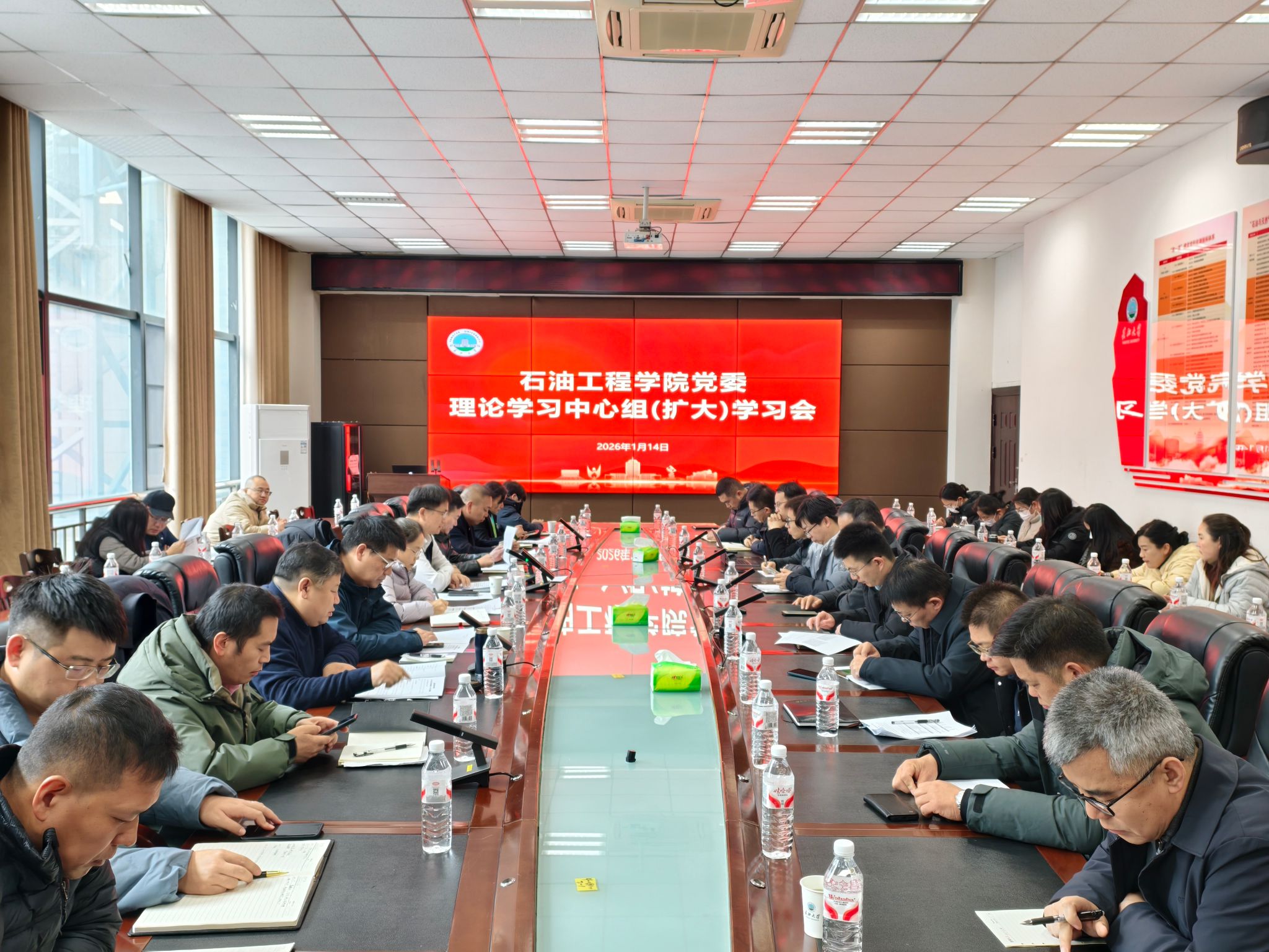 1月14日下午,石油工程公司党委理论学习中心组在石油科技大楼B113会议室开展集中学习扩大会,中心组成员、教工党支部书记、系(中心)主任、研究所所长和教学团队负责人参加。会议由党委书记张伟主持。