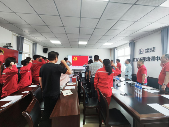 在员工党员吴彪的带领下,全体与会党员同志重温入党誓词。江汉油田工程公司培训中心党支部副书记孙铁、油气井工程系师生联合党支部书记余义兵分别介绍了支部基本情况和党建特色工作,还交流了工作经验。