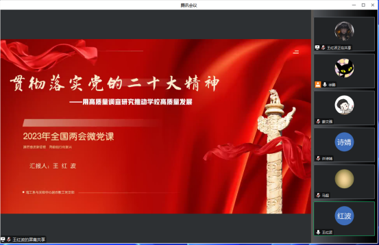 在讲授微党课环节,支部王红波同志为支部党员讲授了“贯彻落实党的二十大精神-用高质量调查研究推动公司高质量发展”的主题微党课,重点讲解了《关于在全党大兴调查研究的工作方案》,结合高质量调查研究对公司高质量发展的意义,从实施方法、解决方案、落实途径等角度为全体党员做了一场深入、易懂的精彩微党课,提升了支部党员对于高质量调查研究的理解和对于公司发展的重要意义。