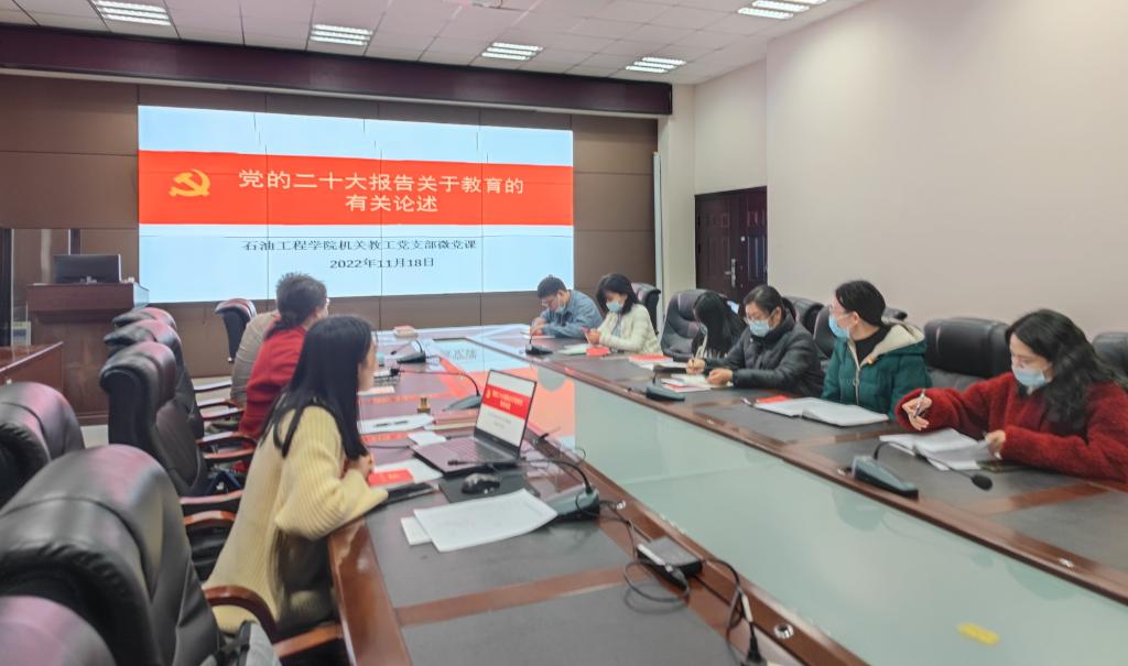 本次大会上,支部书记杨小玉讲授了《党的二十大报告关于教育的有关论述》主题微党课。她对二十大报告中有关教育的新提法、新要求进行了阐述交流,号召机关支部党员认真学习贯彻二十大精神,在积极投身教育改革发展的实践中贡献长大力量。与会党员结合工作实际,针对认真学习宣传贯彻党的二十大精神,积极发表学习体会。公司党委副书记刘娥强调,在党的二十大精神指引下,机关党支部教职工要全面贯彻党的教育方针,落实立德树人根本任务,强化政治站位,主动服务大局,抓实抓细工作,争创一流业绩。