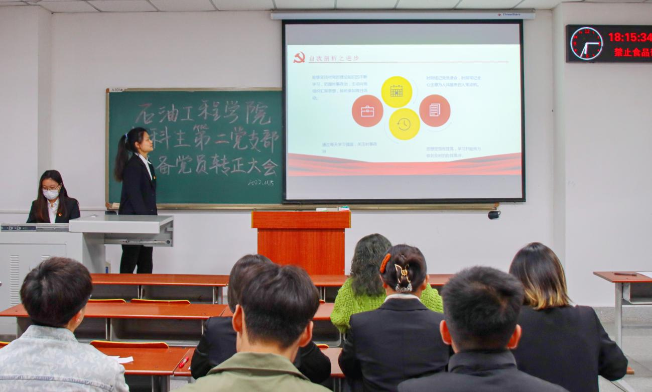 (通讯员 谢晓敏)2022年11月15日下午6时,2022年下半年员工党员转正大会于武教A101如期举行,本次会议由张雨锡、杨心如两位同志主持,会议讨论了关于杨丽等8名同志申请转为正式党员的问题。
