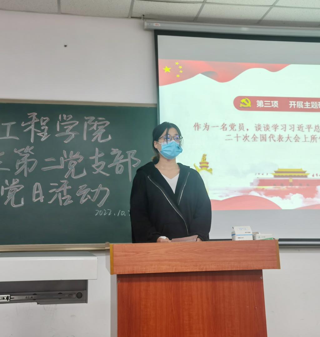 首先,同志们集体诵读党章并学习了党的创新理论,观看了中国共产党第十九届中央委员会第七次全体会议公报视频,时刻保持政治思想与党中央保持一致。随后,大会开展主题研讨,熊志红同志,魏嘉同志和任堂政同志结合其自身情况分享了学习习近平总书记在中国共产党第二十次全国代表大会上所作报告的体会。会议最后一项,进行了党课“我”来讲分享会,主要由颜博等五位同志,分别以“青春之我,当逢、其时”、“感悟二十大,做有为青年”、“新时代合格党员”、“党员责任”、“践行四讲四有”为主题进行分享。