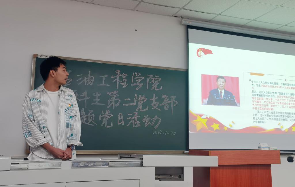 (通讯员任堂政)2022年10月20日下午五时二十分许,44118太阳成城集团本科生第二党支部于A-204召开十月党日主题活动。本次会议由支部冯贯榆同志主持,支部31名本科生党员、党委副书记刘娥参会。