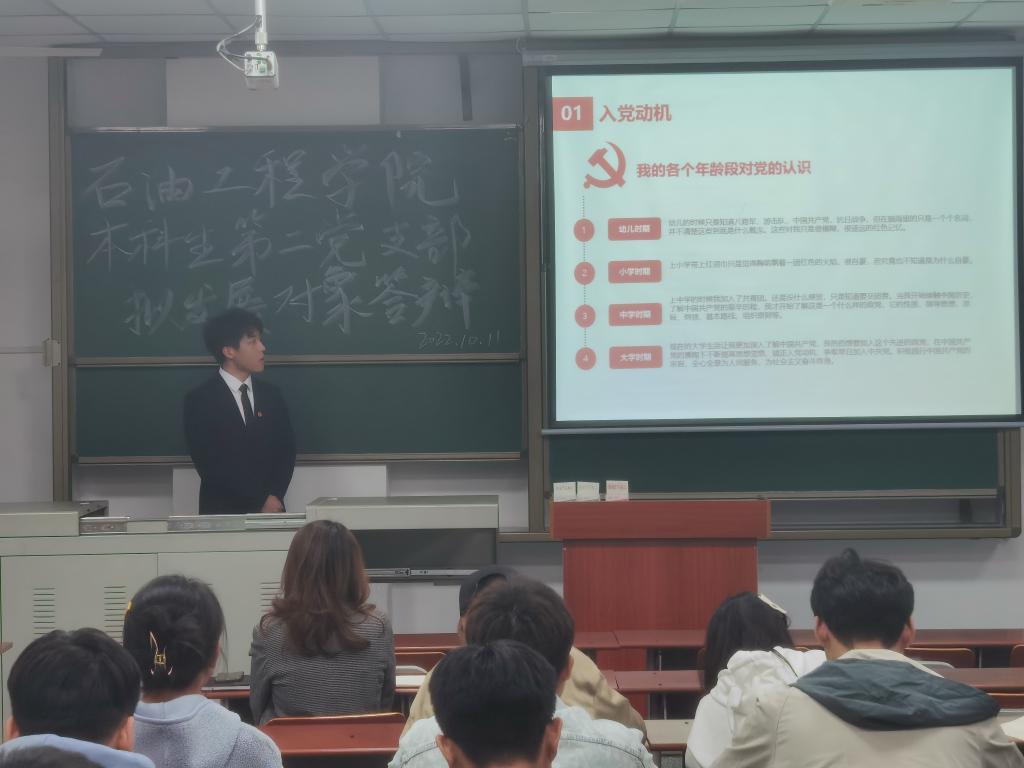 (通讯员 任堂政)2022年10月11日下午六时,44118太阳成城集团本科生第二党支部于B-402召开拟发展对象预审答辩。本次会议由支部任堂政同志主持,党委副书记刘娥老师,支部29名党员,支部16名拟发展对象参会。