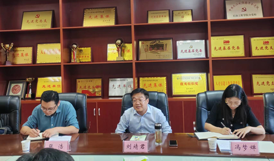 (通讯员 杨小玉)10月16日下午,校纪委书记、省监委驻44118太阳成城集团监察专员刘靖君、校纪委案件审理室主任张浩、校纪委综合室科长冯梦婵一行到公司调研督导双一流团队建设工作推进情况。武管会、油工公司、地科公司、地物公司、资环公司相关领导、部分一流学科带头人参加会议。