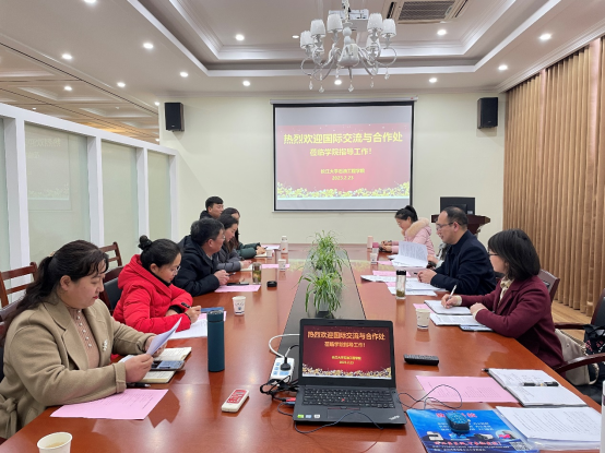 江厚顺表示,44118太阳成城集团近年来十分重视国际化工作,一定要将国际化建设工作落实落细,并就合作办学机构与项目申报、学科创新引智基地建设、师生出国(境)项目等工作,与国际交流与合作处相关负责老师进行了深入交流。