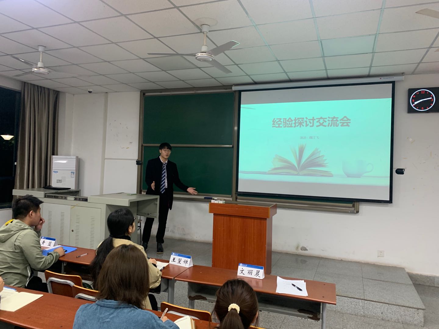 18级的同学介绍完经验后,文丽晨老师请19级两位俄语成绩非常突出的同学韦朝泸、周彦君做了经验分享。韦朝泸同学的分享幽默风趣,他介绍了他的学习方法就是把书本上的东西全部扎扎实实的学懂、学通,并且有不懂的地方,多向老师请教,还晒出了他向老师问问题的大量截图,告诉同学们不要不好意思,有不懂的就勤问问题;周彦君同学则把自己在日常学习中注意的方面、积累的经验给同学们做了传授。