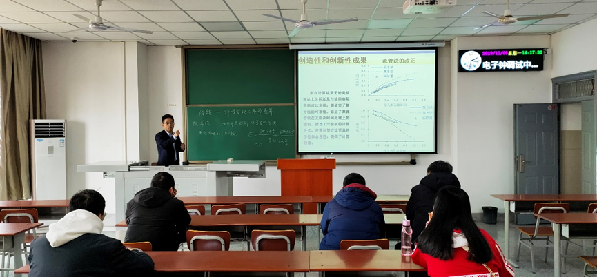 刘捷老师在《现代采油理论与技术进展》第三讲物理法采油新技术的课堂上,以“科学家的赤子之心”做了主题分享,以最近热门电影“我和我的祖国”的片段作为例子,讲述了许多科研工作者为国家和民族的科技发展默默奉献的故事,刘捷勉励研究生要学习老一辈科技工作者无私奉献、不求回报、立志报国的精神。