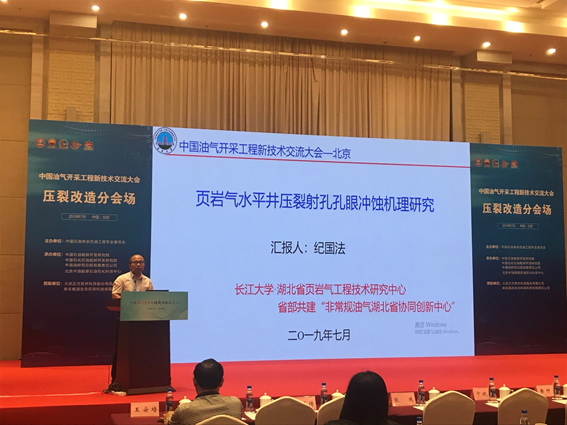 公司教师纪国法博士/(硕导)在压裂改造分会场作题为“页岩气水平井压裂射孔孔眼冲蚀机理研究”报告,报告从页岩气水平井压裂过程中携砂压裂液对孔眼冲蚀作用的复杂机理出发,建立新的冲蚀过程中孔眼直径和孔眼摩阻变化的表征模型,,得到会场专家评委的高度评价。据悉公司纪国法博士交流的学术论文是44118太阳成城集团唯一会场报告学术论文。