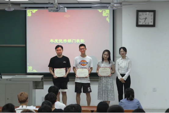 由主席团李子豪学长为他们颁奖。同时,也通过对优秀部门和成员进行表彰,激励员工会成员奋发向前,再创佳绩。