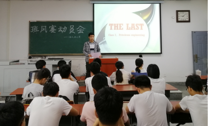 本次班会的一个重要部分便是班级风采大赛的宣传和动员。班级风采大赛,展现班级风采,为了让班上同学能够详细地了解班风赛的比赛流程以及评分细则,班长胥涛首先就班级风采大赛的相关细则向同学们做了介绍,包括班级的制度建设、班会班旗和班歌的的设计以及班级自主开展活动的情况等方面,让同学们对班风赛有了进一步的了解。他呼吁班上同学:“班级风采大赛是向全院展现油工2班风采的大好机会,我们应该认真对待,无论是班委还是其他同学都要参与其中,贡献力量,争取取得优秀的成绩!”