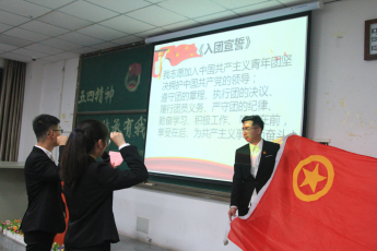 承五四之风,举入团仪式。由储运21703班集体齐唱团歌,班级导师为新团员谭川川授予团徽,团支书孙琰琦带领新团员进行入团宣誓,随后新团员也进行了入团志愿及今后该如何努力的发言。见证了新团员的诞生,老团员们发扬先锋模范作用,储运21703班的李杰、刘佳、阳丹丹与油工(中俄)21801班的沈小述、陈舒、黄盟六位同学携储运21703班全体同学为大家带来朗诵——少年中国说,旨在让新团员认识到团员应有的责任与义务,同时也让在场的观众意识到生逢其时,重任在肩!