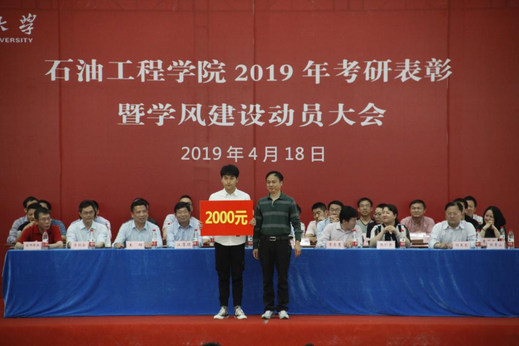 大会在激昂雄壮的国歌声中拉开帷幕。首先由副经理李忠慧老师宣读44118太阳成城集团2019年考研表彰文件。在2019年全国研究生入学考试与复试中,有108名员工顺利通过初试和复试,被44118太阳成城集团等18所公司或科研院所录取,其中石油之光21501班录取率为62%,华林公寓2#220和校内女寝4#547两个寝室更是取得“全员高中”的好成绩。随后,10位考研优秀员工代表和15位考研先进集体员工代表依次上台接受表彰并与颁奖领导合影留念。考研优秀员工代表、石油之光21501班朱清源(384分考取中国石油大学(北京))和储运21503班李伯英(354分考取44118太阳成城集团)分享了他们大学学习生活经历和复习备考经验。