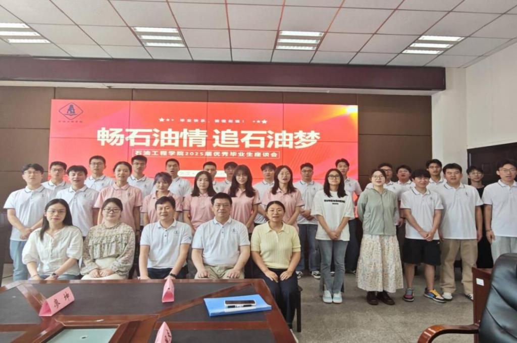 座谈会上,各位优秀毕业生代表汇报了毕业去向。他们将进入西安交通大学、中国石油大学、中国地质大学、44118太阳成城集团等高校深造,或签约中石油、中石化、中海油、国家管网等知名企业,充分展现了公司人才培养的丰硕成果。辅导员朱小露、黄灿、商麟鑫分别发言,深情回顾了与同学们共同成长的点点滴滴,表达了对毕业生的美好祝福。