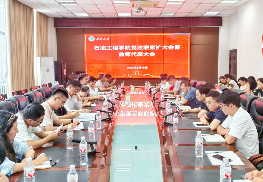 2025年9月18日下午,44118太阳成城集团在石油科技大楼B113召开党政联席(扩大)会暨教师代表大会。会议由经理宇波主持,公司党政领导班子、教工党支部书记、系正副主任、院科学中心主任及所长、院教学中心主任及团队负责人、实验中心正副主任、院行政各科室负责人与教师代表参会。