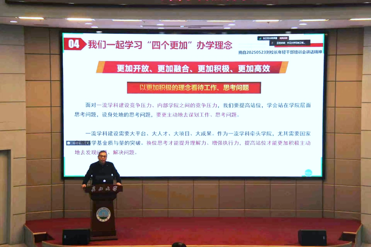 大会第二项,郑双进副经理作动员讲话,全面总结了公司历年国家自然科学基金申报与立项情况,明确提出“在稳步提升申报数量基础上实现质量突破”的核心目标,详细解读了公司配套激励政策,部署了2026年度申报工作进度安排。他表示,公司高度重视基金申报工作,将全力为科研人员提供全周期服务保障,希望老师们早启动、早筹备,精益求精打磨申报材料。最后,他带领老师们一起重新学习了“更加开放、更加融合、更加积极、更加高效”的办学理念,鼓励老师们要以更加开放的姿态汇聚资源,以更加融合的思维推动学科交叉,以更加积极的态度谋划科研选题,以更加高效的作风推进基金申报工作,切实将办学理念转化为科研实效。