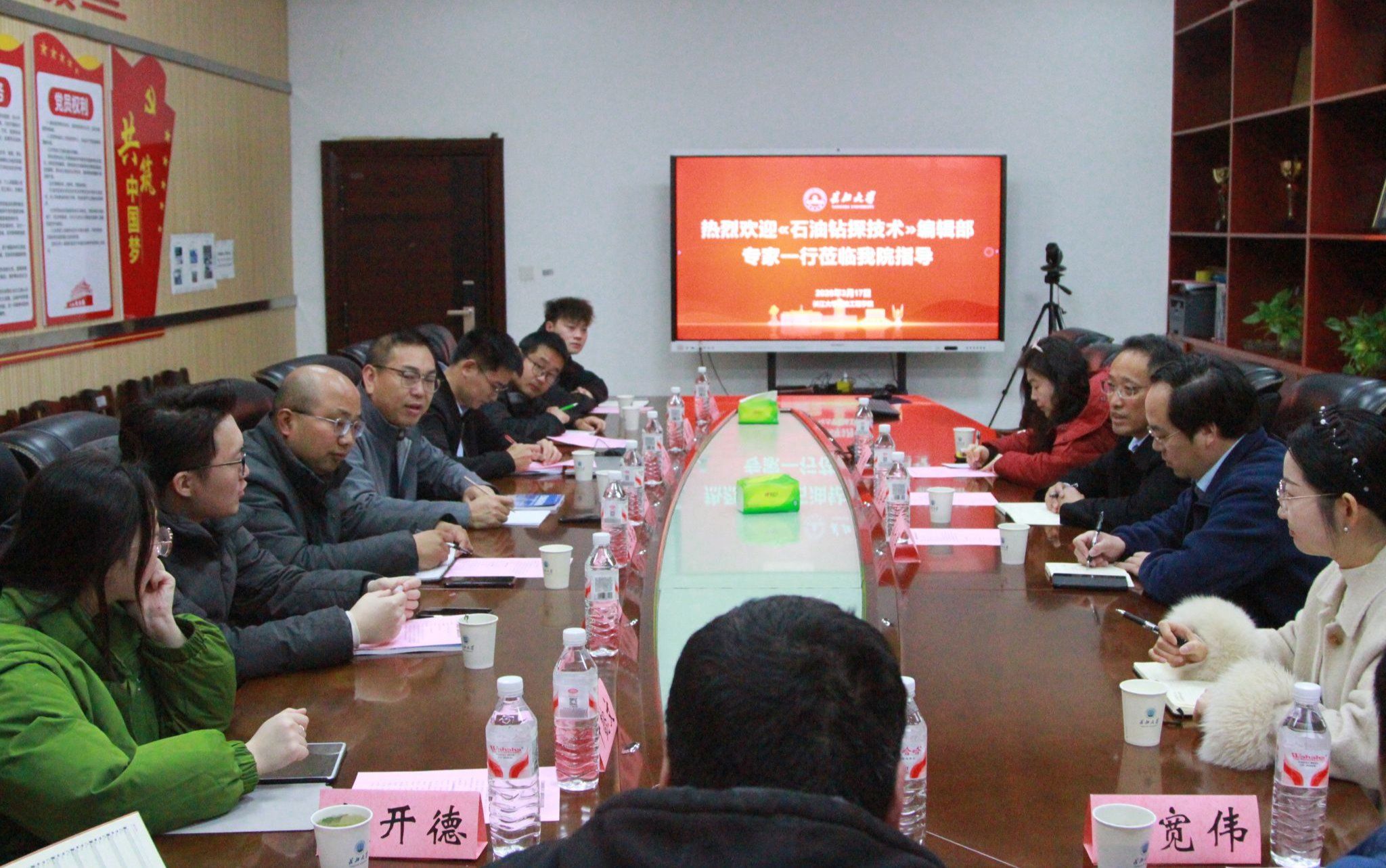3月17日,《石油钻探技术》编辑部常务副主编陈会年、副主任令文学、策划编辑曹耐一行到访公司,与公司师生代表举行交流座谈会。座谈会由副经理郑双进教授主持。