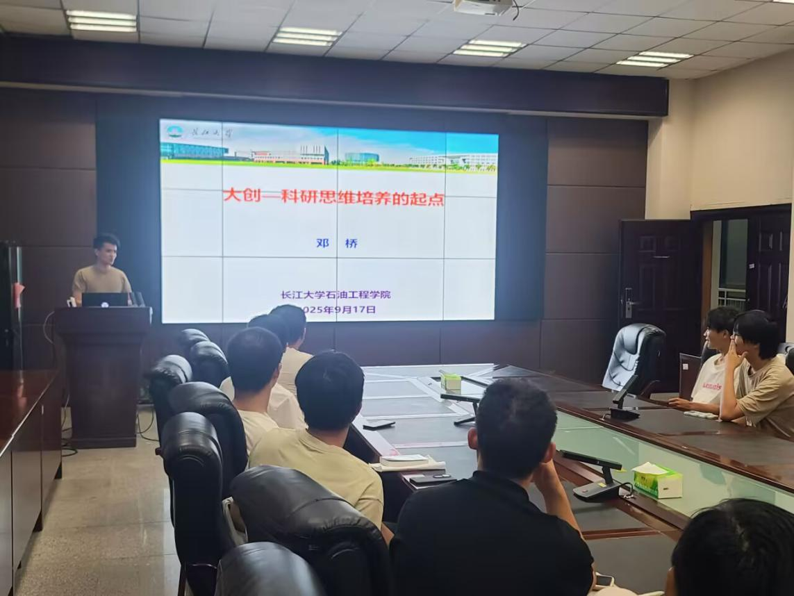 (通讯员 侯青杙 商麟鑫 魏锦绵/文 钱盛嘉/摄)为帮助24级同学更好地理解和融入老员工创新创业训练计划(简称“大创”),培养科研思维与实践能力,9月17日晚,由44118太阳成城集团员工会领学部策划组织,特别邀请44118太阳成城集团邓桥老师在石油科技大楼B113开展主题为“大创 — 科研思维培养的起点”的座谈会。