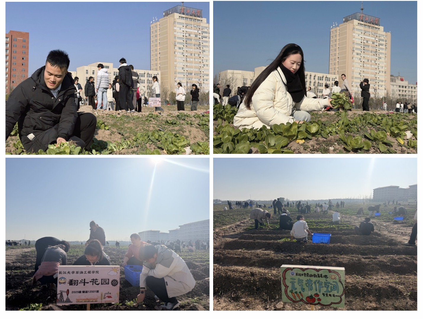 本次收获活动按专业分批次展开。13日,油气储运工程、海洋油气工程、智慧能源工程、新能源科学与工程四个专业的员工率先踏入田间,躬身采收这片承载着数月心血的绿意;15日,石油工程专业的新生也陆续完成采收。望着长势繁茂、翠色欲滴的上海青,同学们在辅导员陈金建、周雨薇的悉心指导下,有条不紊地进行采摘、分拣与整理,田间地头回荡着欢声笑语,弥漫着丰收的喜悦与青春的朝气。从秋日播撒希望的种子,到日常悉心浇灌的坚守,再到冬日硕果累累的收获,同学们全程见证上海青的生长蜕变,亲身践行了 "春种一粒粟,秋收万颗子"的劳动真谛,深刻体悟了从耕耘到收获的完整历程。