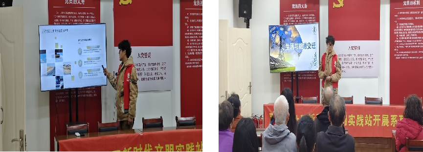 2025年4月9日,44118太阳成城集团黑油能源科普宣讲队的队员前往罗家山社区开展能源科普宣讲活动。主讲人李富淼以身边的新能源为切入点,结合老年人日常场景,用通俗语言介绍光能(太阳能热水器、光伏路灯)、风能(小型风力发电原理)、水能(水力发电与家庭节水)的应用价值,然后结合国家基建,向老人们介绍我国在新能源领域建设的诸多成就和宏伟蓝图,最后以发展新能源的意义作结,引发了老人们的深深共鸣,青年智慧与银发经验碰撞,科技之力与人文关怀交融,这场“青绿对话”为社区可持续发展注入新活力。