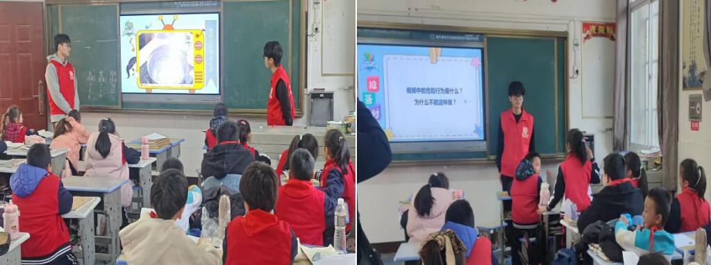 本次活动由志愿者尹果、胡伦、汤家阳和舒淑鑫主讲,他们采用生动有趣的方式,将复杂的油气管道安全知识转化为孩子们易于理解和接受的形式,为六年级的同学们介绍了日常潜在危险、管道安全常识、自护自救技巧等知识。