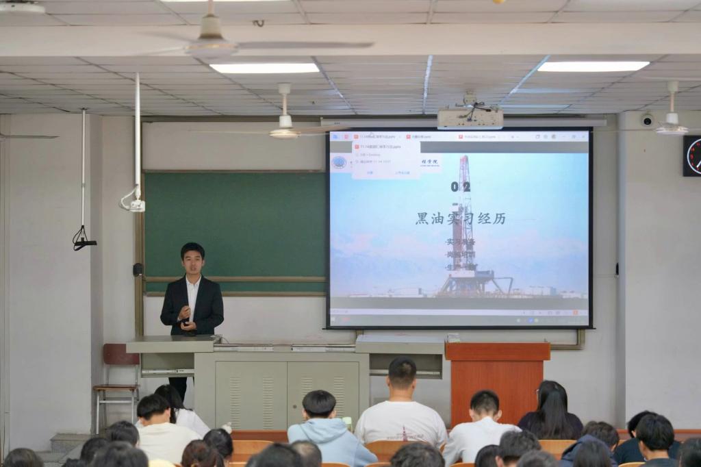 活动伊始,实践队队员魏永辉首先介绍了“黑油”实践队的发展历程,并详细分享了他在西部钻探公司35天的实践经历。实践之初,由于缺乏实操经验,魏永辉和其他实践队员需要从基层小工做起。面对困难,他们展现了长大学子坚韧的精神,最终赢得了井队的认可,并接受了技术员培训。魏永辉认为,这段经历不仅磨练了他的性格和工作能力,还对他就业起到了很大的帮助。同时,他寄语学弟学妹们要珍惜时光,认真学习提高绩点,积极参与实践活动。