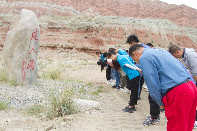 图为实践队员向“健人沟”纪念碑鞠躬。通讯员 陈金建 摄