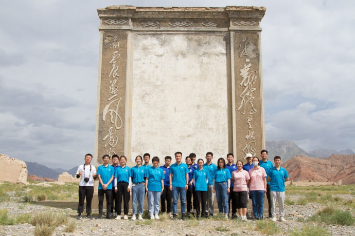 图为实践队员在依奇克里克纪念碑前合影留念。通讯员 陈金建 摄